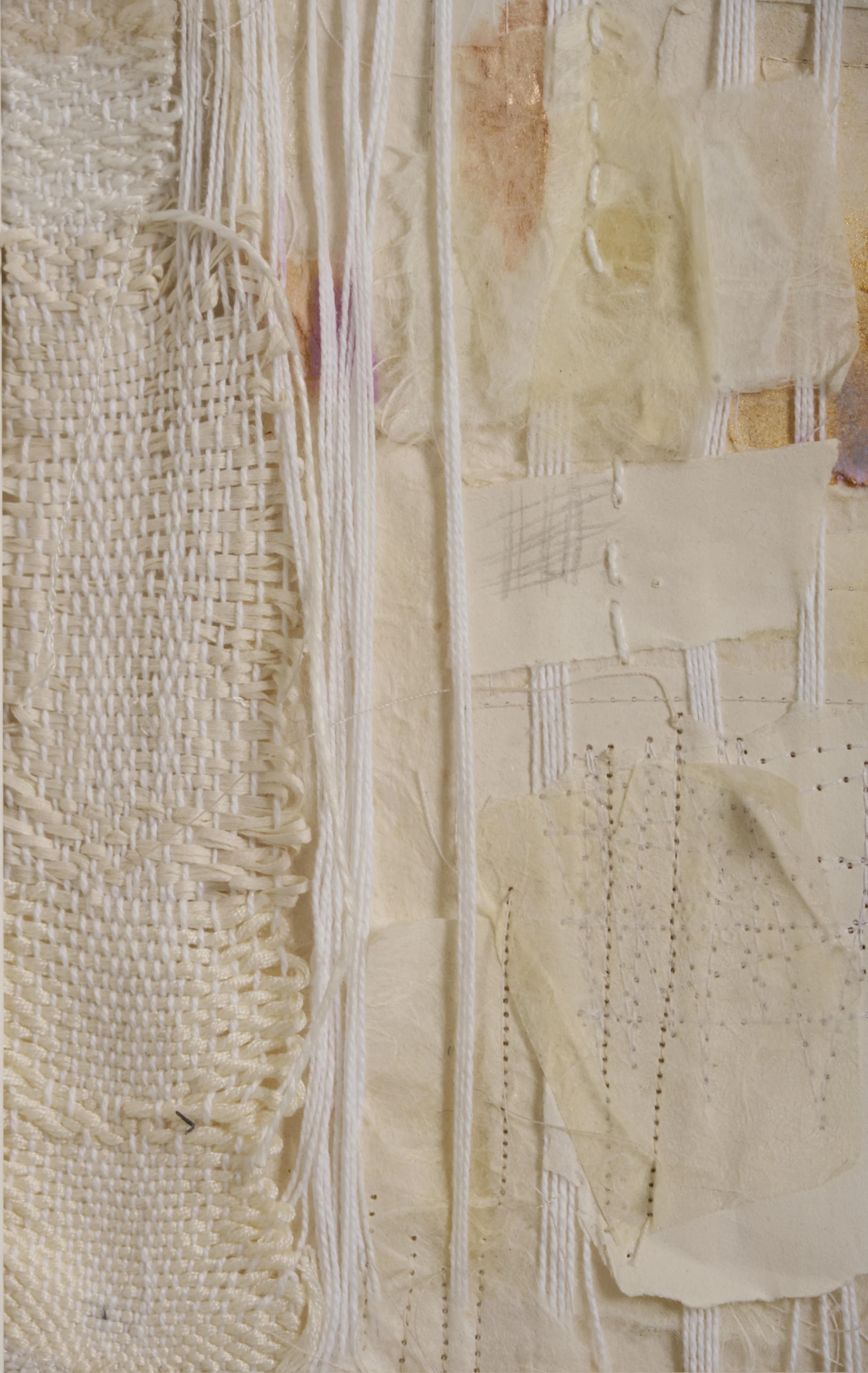 Hand woven “frame”, handmade paper, machine stitching